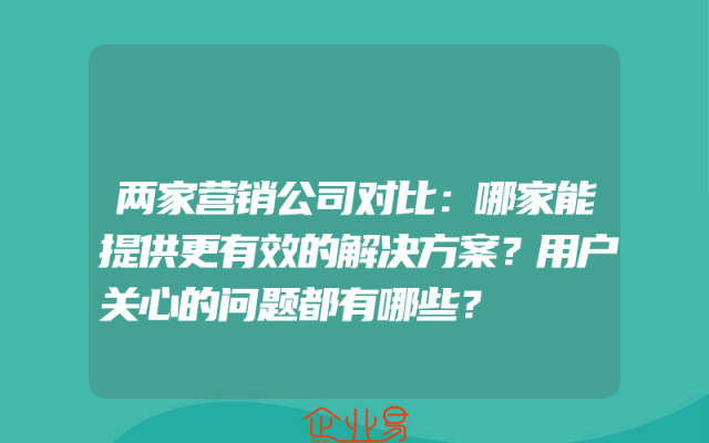 - 两家营销公司对比:哪家能提供更有效的解决方案?用户关心的问题都有哪些?