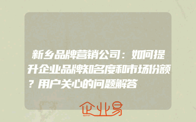 - 新乡品牌营销公司:如何提升企业品牌知名度和市场份额?用户关心的问题解答