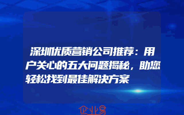 - 深圳优质营销公司推荐:用户关心的五大问题揭秘,助您轻松找到最佳解决方案