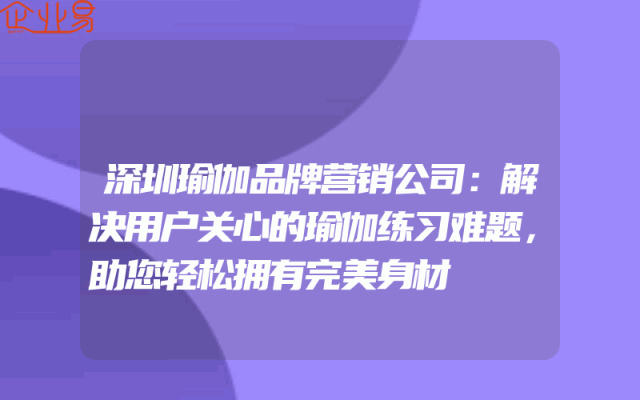 - 深圳瑜伽品牌营销公司:解决用户关心的瑜伽练习难题,助您轻松拥有完美身材