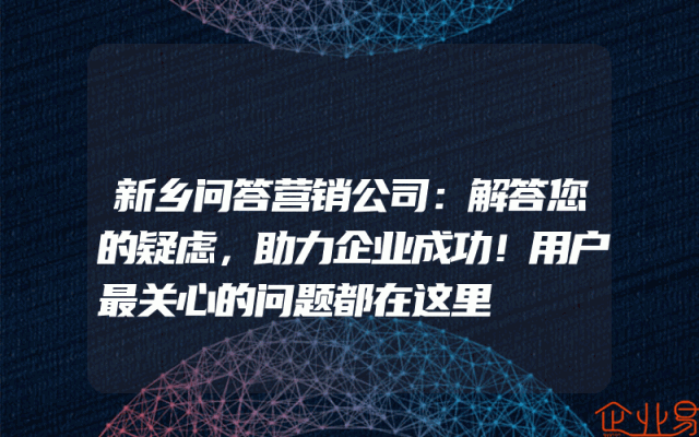 - 新乡问答营销公司:解答您的疑虑,助力企业成功!用户最关心的问题都在这里