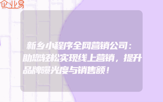 - 新乡小程序全网营销公司:助您轻松实现线上营销,提升品牌曝光度与销售额!