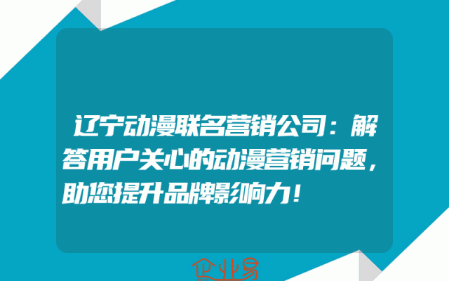 - 辽宁动漫联名营销公司:解答用户关心的动漫营销问题,助您提升品牌影响力!