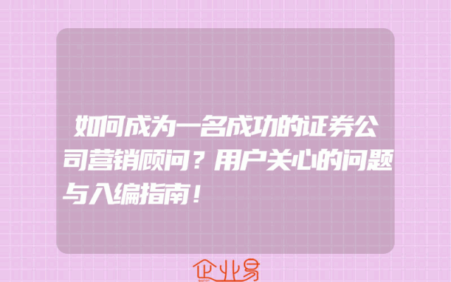 - 如何成为一名成功的证券公司营销顾问?用户关心的问题与入编指南!