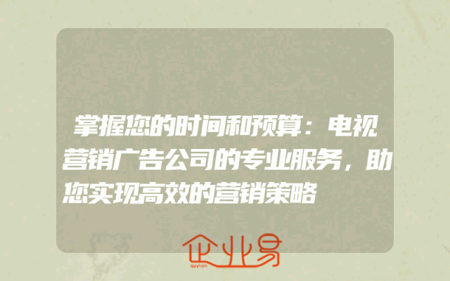 - 掌握您的时间和预算:电视营销广告公司的专业服务,助您实现高效的营销策略