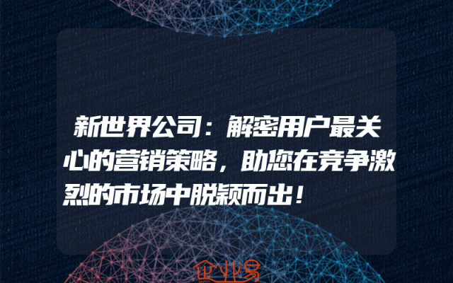 - 新世界公司:解密用户最关心的营销策略,助您在竞争激烈的市场中脱颖而出!