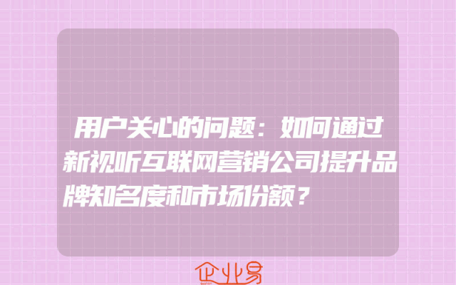 - 用户关心的问题:如何通过新视听互联网营销公司提升品牌知名度和市场份额?
