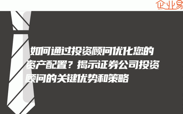 - 如何通过投资顾问优化您的资产配置?揭示证券公司投资顾问的关键优势和策略
