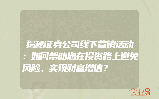 - 揭秘证券公司线下营销活动:如何帮助您在投资路上避免风险、实现财富增值?