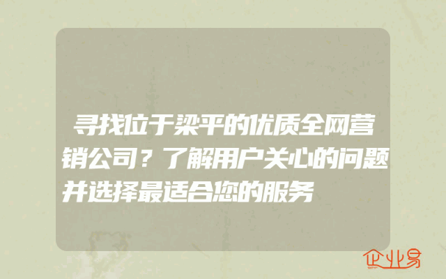- 寻找位于梁平的优质全网营销公司?了解用户关心的问题并选择最适合您的服务