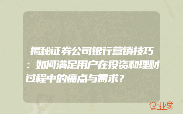 - 揭秘证券公司银行营销技巧:如何满足用户在投资和理财过程中的痛点与需求?