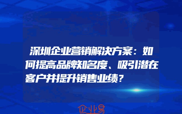 - 深圳企业营销解决方案:如何提高品牌知名度、吸引潜在客户并提升销售业绩?