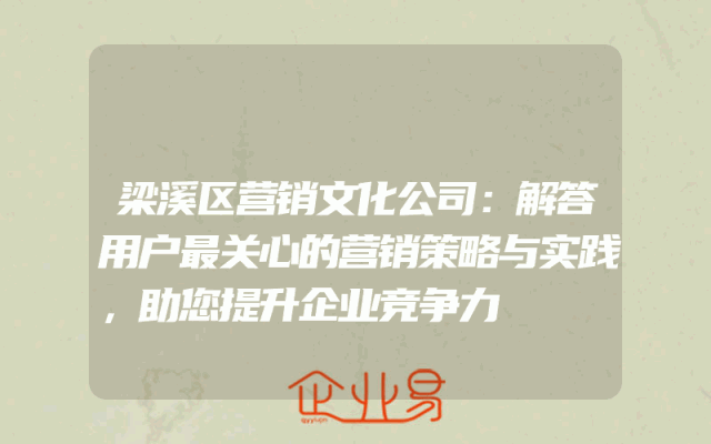 - 梁溪区营销文化公司:解答用户最关心的营销策略与实践,助您提升企业竞争力