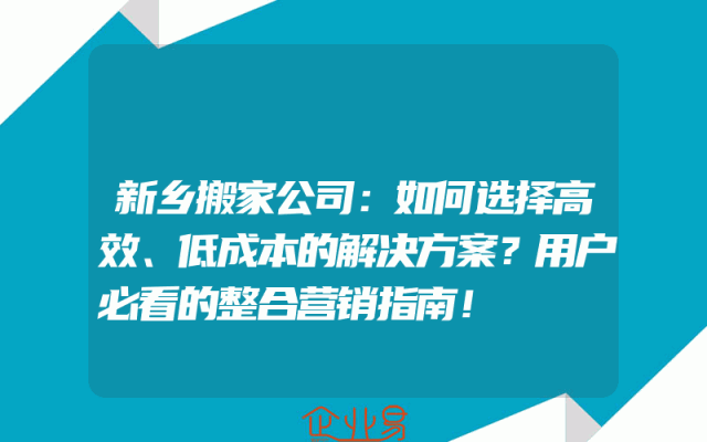 - 新乡搬家公司:如何选择高效、低成本的解决方案?用户必看的整合营销指南!