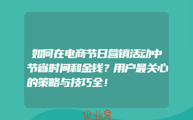 - 如何在电商节日营销活动中节省时间和金钱?用户最关心的策略与技巧全!