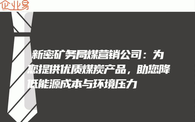 - 新密矿务局煤营销公司:为您提供优质煤炭产品,助您降低能源成本与环境压力