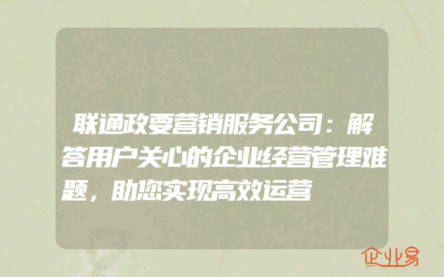 - 联通政要营销服务公司:解答用户关心的企业经营管理难题,助您实现高效运营