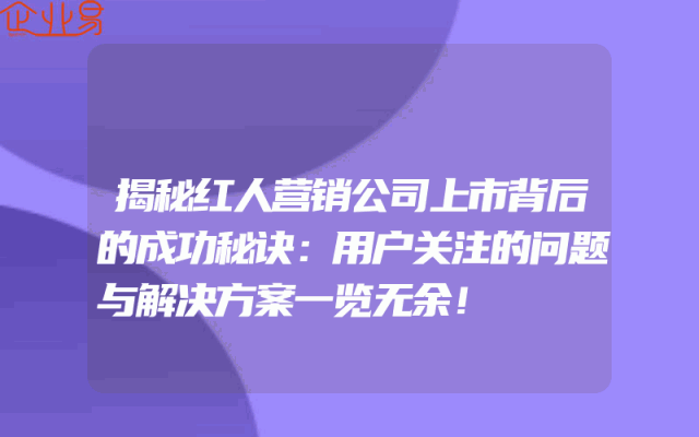 - 揭秘红人营销公司上市背后的成功秘诀:用户关注的问题与解决方案一览无余!