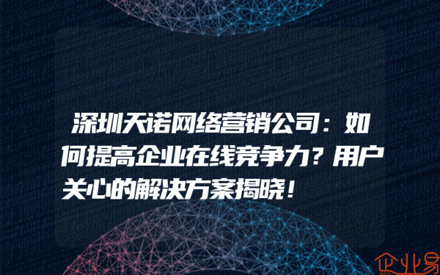 - 深圳天诺网络营销公司:如何提高企业在线竞争力?用户关心的解决方案揭晓!