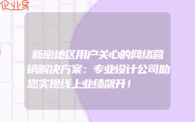 - 新密地区用户关心的网络营销解决方案:专业设计公司助您实现线上业绩飙升!