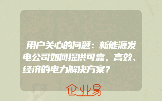 - 用户关心的问题:新能源发电公司如何提供可靠、高效、经济的电力解决方案?