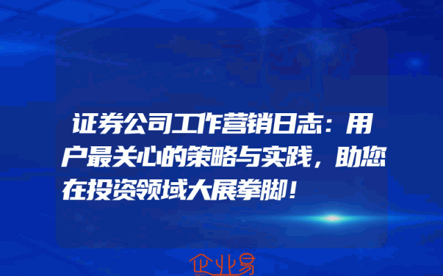 - 证券公司工作营销日志:用户最关心的策略与实践,助您在投资领域大展拳脚!
