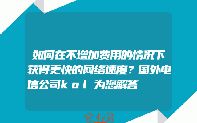 - 如何在不增加费用的情况下获得更快的网络速度?国外电信公司kol为您解答