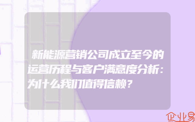 - 新能源营销公司成立至今的运营历程与客户满意度分析:为什么我们值得信赖?