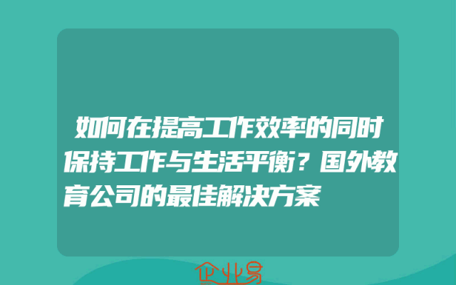 - 如何在提高工作效率的同时保持工作与生活平衡?国外教育公司的最佳解决方案