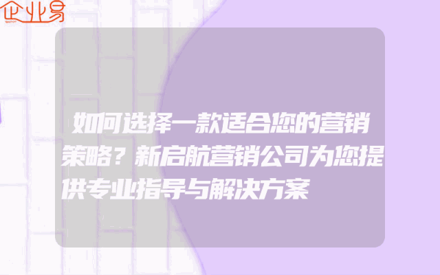 - 如何选择一款适合您的营销策略?新启航营销公司为您提供专业指导与解决方案