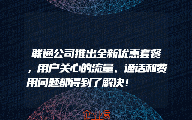- 联通公司推出全新优惠套餐,用户关心的流量、通话和费用问题都得到了解决!