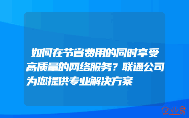 - 如何在节省费用的同时享受高质量的网络服务?联通公司为您提供专业解决方案