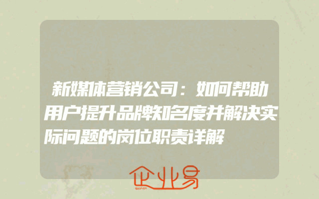 - 新媒体营销公司:如何帮助用户提升品牌知名度并解决实际问题的岗位职责详解