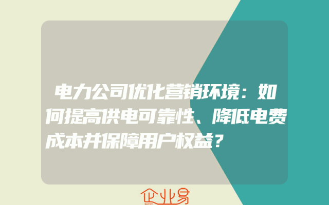 - 电力公司优化营销环境:如何提高供电可靠性、降低电费成本并保障用户权益?