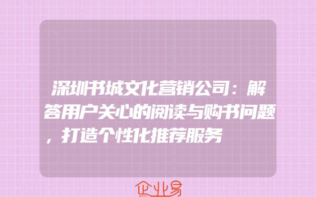 - 深圳书城文化营销公司:解答用户关心的阅读与购书问题,打造个性化推荐服务