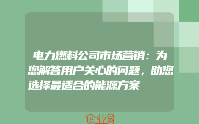 - 电力燃料公司市场营销:为您解答用户关心的问题,助您选择最适合的能源方案