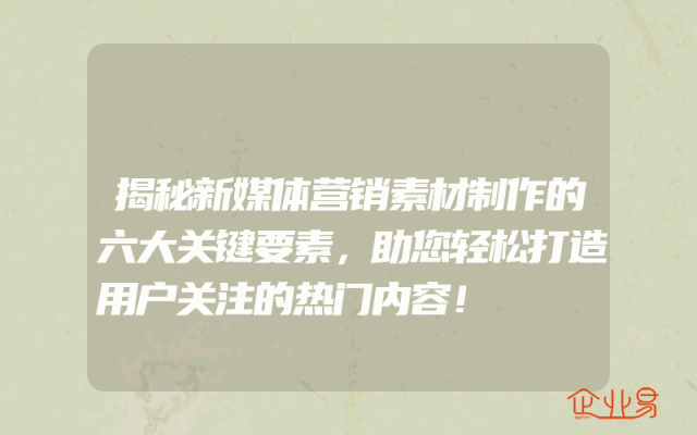 - 揭秘新媒体营销素材制作的六大关键要素,助您轻松打造用户关注的热门内容!