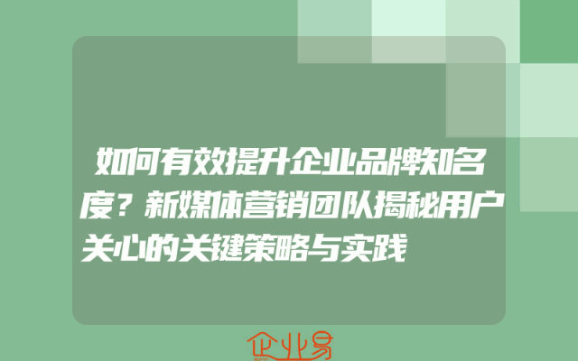 - 如何有效提升企业品牌知名度?新媒体营销团队揭秘用户关心的关键策略与实践
