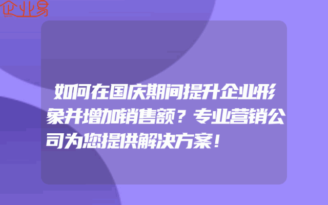 - 如何在国庆期间提升企业形象并增加销售额?专业营销公司为您提供解决方案!