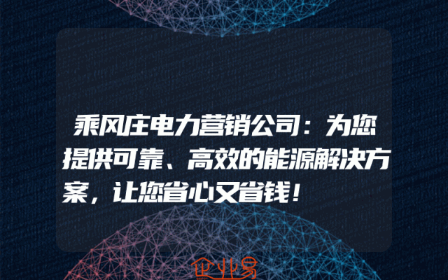 - 乘风庄电力营销公司:为您提供可靠、高效的能源解决方案,让您省心又省钱!