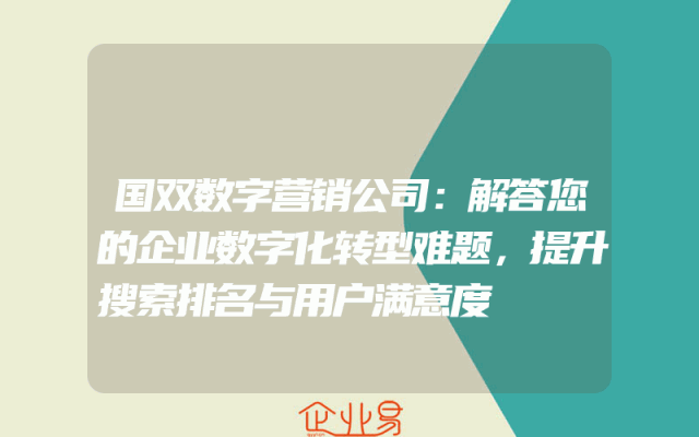 - 国双数字营销公司:解答您的企业数字化转型难题,提升搜索排名与用户满意度