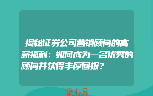 - 揭秘证券公司营销顾问的高薪福利:如何成为一名优秀的顾问并获得丰厚回报?