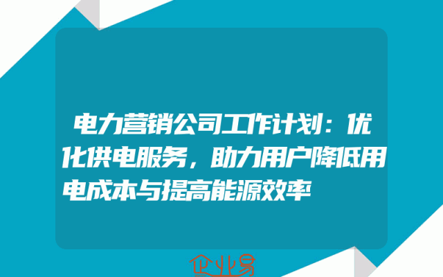 - 电力营销公司工作计划:优化供电服务,助力用户降低用电成本与提高能源效率