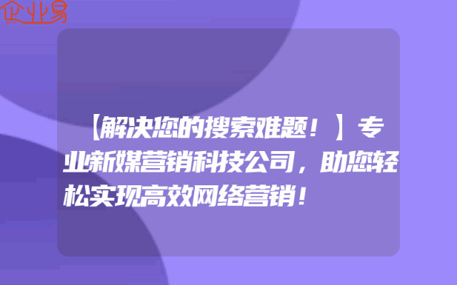 - 【解决您的搜索难题!】专业新媒营销科技公司,助您轻松实现高效网络营销!