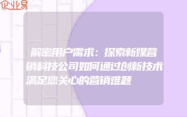- 解密用户需求:探索新媒营销科技公司如何通过创新技术满足您关心的营销难题