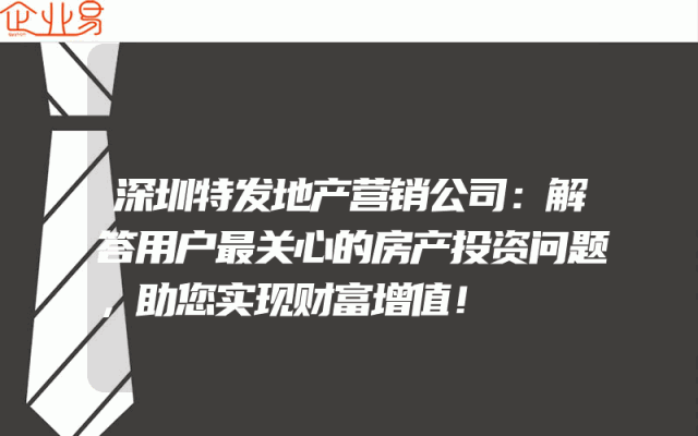 - 深圳特发地产营销公司:解答用户最关心的房产投资问题,助您实现财富增值!在当今社会,房产投资已经成为了许多人实现财富增值的重要途径。然而,对于许多初次接触房产投资的人来说,他们可能会对房产投资的各种问题感到困惑。为了帮助广大用户解决这些问题,
