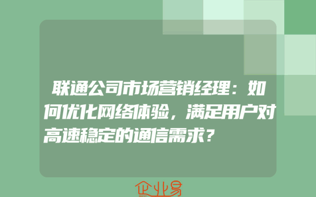 - 联通公司市场营销经理:如何优化网络体验,满足用户对高速稳定的通信需求?