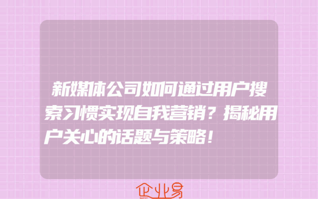 - 新媒体公司如何通过用户搜索习惯实现自我营销?揭秘用户关心的话题与策略!