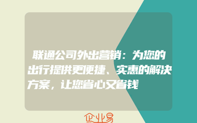 - 联通公司外出营销:为您的出行提供更便捷、实惠的解决方案,让您省心又省钱
