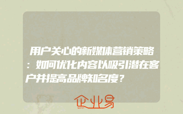 - 用户关心的新媒体营销策略:如何优化内容以吸引潜在客户并提高品牌知名度?